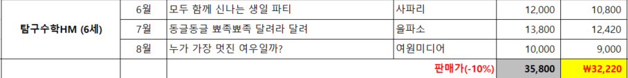 탐구수학HM- 6세 (6/7/8월) ★낱권구매 가능