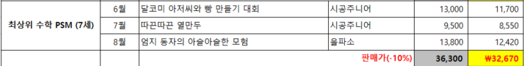 최상위 수학 PSM- 7세 (6/7/8월) ★낱권구매 가능